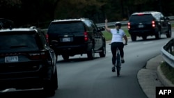 A watan Oktoban shekarar da ta gabata ne, ‘yan jarida suka dauki hoton wata mata a lokacin da take tuka keken ta a tsakiyar birnin Washington, dai-dai da lokacin da motocin shugaban kasar Amurka Donal J. Trump suke wucewa.