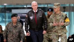 "Wannan takala ta safiyar yau dinnan da Koriya Ta Arewa ta yi, shi ne na baya-bayan nan na al'amuran da ke tunatar da mu irin hadarin da kowannenku ke fuskanta kulluyaumin a kokarin kare 'yancin mutanen Koriya Ta Kudu da kuma kare Amurka a wannan bangare na duniya," a cewar Pence .