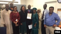 Ma'aikata da abokan arziki sun taru domin taya Ibrahim murnar wanna karamci da ya samu daga hukumar gidan rediyon muryar Amurka VOA.