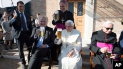 Aranar Alhamis magajin Benedict Papa Roman mai ci yanzu Francis ya kai masa ziyara a gidansa don yi masa barkar ranar haihuwarsa.