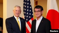 Sakataren ma’aikatar harkokin tsaron Amurka Jim Mattis ya gana da takwaransa na kasar Japan yau Juma’a a Tokyo, don a lafar da damuwar da KTA ta ke da shi akan sadaukarwar Amurka ga yankin, a yayin da ake neman kawo matsaya a yarjejeniyar dakatar da shirin Nukiliyar KTA.