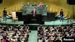 Shugaban Amurka Donald Trump bazai hallarci taron ba. A yau Litini, a maimakon haka, zai hallarci wani taro akan cin zarafi da ake yiwa mabiya addinai marasa rinjaye, musamman mabiya addinin Kirista, kafin ya zanta a zama daban-daban da shugabanin Pakistan, Poland, New Zealand, Singapore, Egypt da Korea ta Kudu.