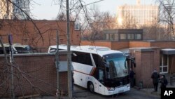 Wasu manyan motocin safa-safa guda ukku aka hango yau Alhamis shake da mutane da kayansu suna barin harabar ofishin jakadancin Amurka dake birnin Moscow, sun tasarwa babban filin jirgin sama a daidai lokacinda wa’adin zaman kasar da Rasha ta yanke masu yake karewa.